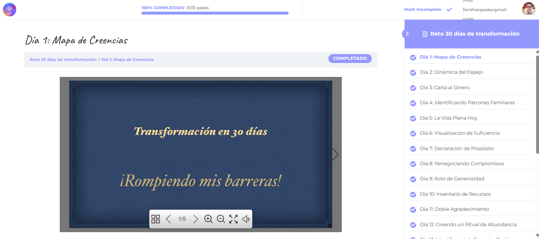 “Después del Taller SAE, me sentía motivada pero temía perder el enfoque. El Reto de 30 Días fue el complemento perfecto: ahora dedico solo 15 minutos diarios a mí misma y siento que cada día estoy más fuerte y en paz.”